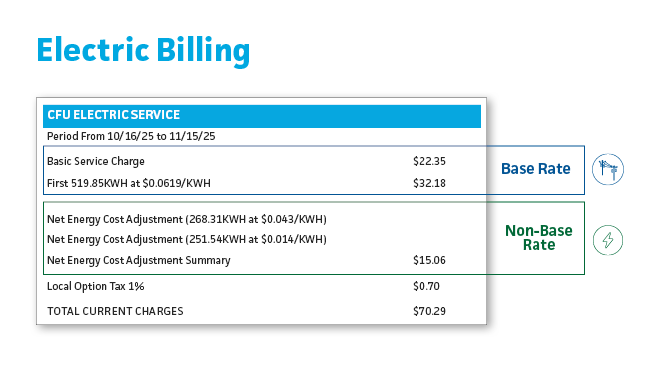 Electric rates are made up of CFU's base rates and a non-base rate which is the Net Energy Cost Adjustment.